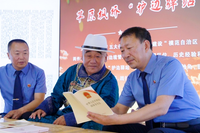 今年8月,内蒙古自治区东乌珠穆沁旗检察院干警向“公益守护人”宣传法律法规。