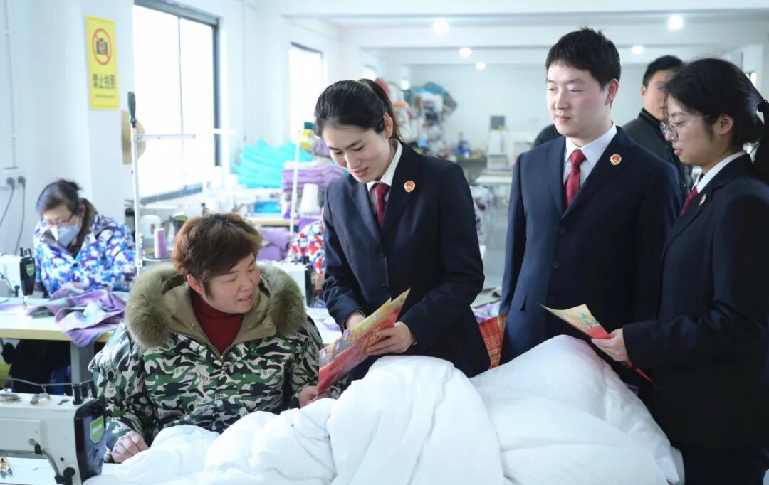 河南省社旗县检察院检察官前往该县大冯营镇艾草产业园,向职工宣传保障工人权益法律法规。