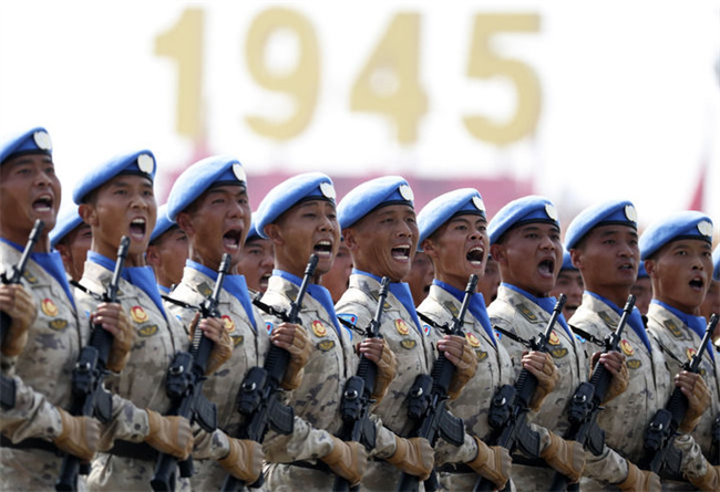 2025年9月3日,纪念中国人民抗日战争暨世界反法西斯战争胜利80周年大会在北京隆重举行。这是维和部队方队接受检阅。新华社记者李明 摄