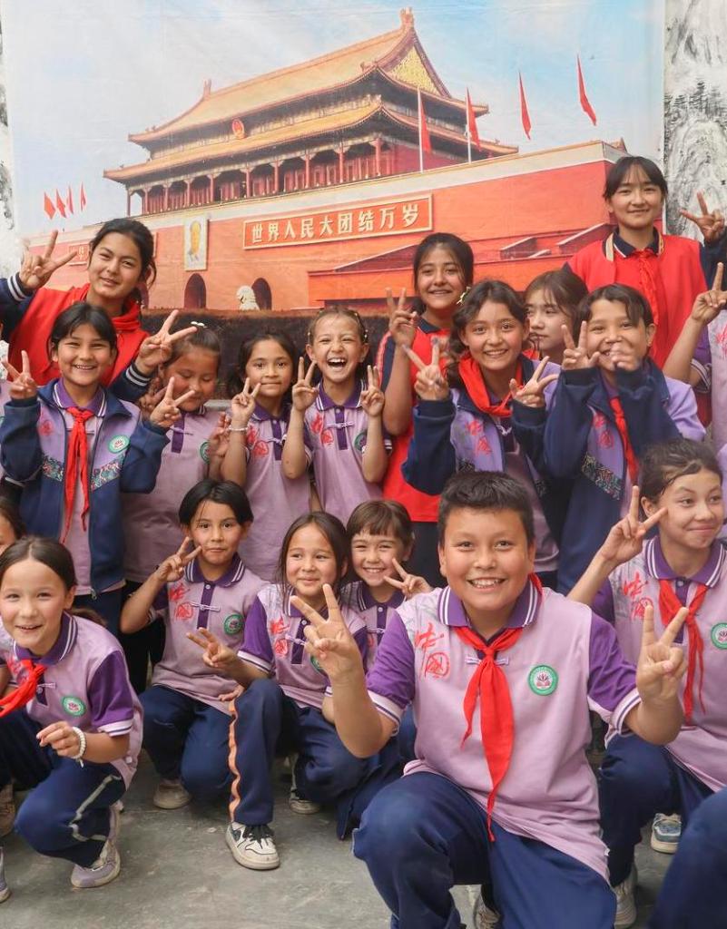 甘肃、青海、四川、广东……学校的老师来自五湖四海。乃则热的数学老师牛军平,2018年从甘肃来到新疆。“这里小孩求知的眼神把我留住。”他说,“我们要牢记总书记嘱托,加强对青少年的现代文明教育、科普教育,引导他们积极融入现代文明生活。”几年过去,老师不仅留了下来,还把家安在了这里,而“为中华民族而自豪”则成了孩子们的共识。